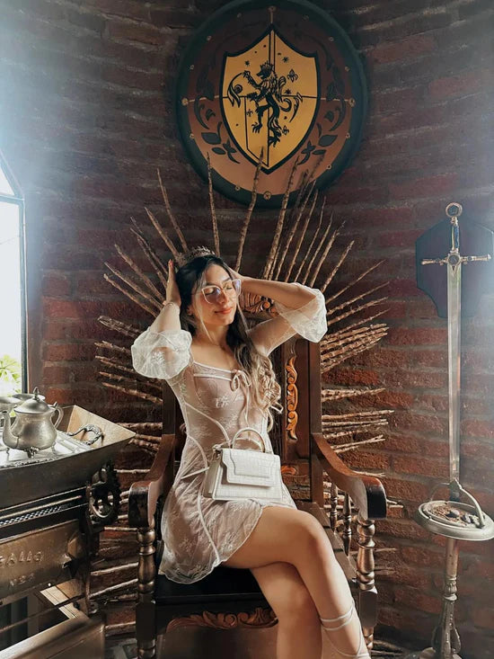 Nein, das Kleid ist nicht dehnbar, aber der fließende Schnitt ermöglicht große Bewegungsfreiheit.